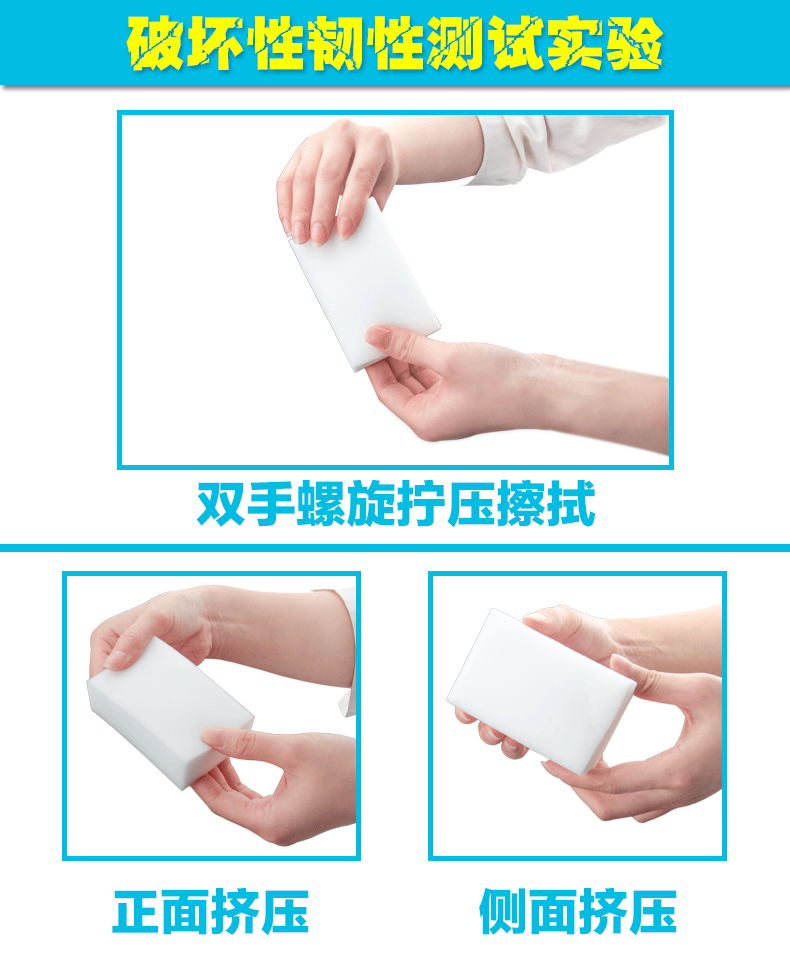 使用該產品只需用水,不需清潔劑,去污能力強,采用物理去污的機理,依靠海綿內的納米毛細管開孔結構,在抹拭過程自動吸附物體表面的污漬,完全不依賴任何化學洗滌劑去幫助降解,具省時,省力,省錢,便利,環保,健康等特點。